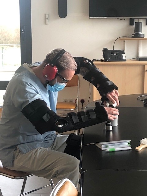 Retour positif des soignants sur les ateliers simulation grand âge, qui ont eu lieu au premier trimestre. Organisés en collaboration avec la MGEN , les soignants ont pu revêtir l’espace de quelques minutes des simulateurs de grand âge afin de ressentir les difficultés de la personne âgée.